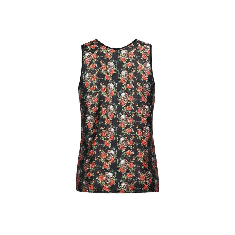Weiches Modal in klarer Farbe mit Aufdruck auf Rosen und Totenköpfen
