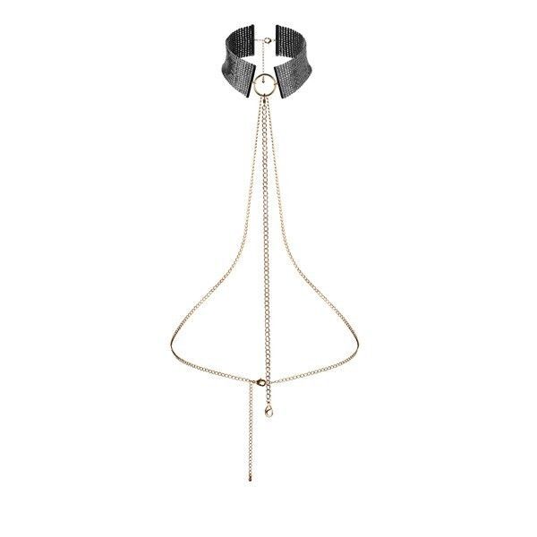 Regulowany choker z metalowej siatki i pasek z łańcuszkiem.