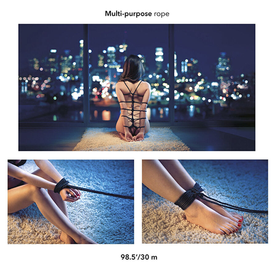 Lassen Sie Ihren BDSM-Fantasien freien Lauf und werden Sie kreativ mit dem 30 Meter langen Scandal® BDSM-Seil. Unsere preisgekrönte Scandal®-Kollektion hat das seidig-weiche Shibari-freundliche Seil Ihrer wildesten Fantasien geschaffen, mit dem Sie tief in endlos kreative Bondage-Spiele eintauchen können. Geben Sie sich mit jeder Wicklung und jedem Knoten dieses seidigen, schlanken Seils der gesteigerten Lust hin. Wickeln Sie es fest um Handgelenke, fesseln Sie sanft die Knöchel oder kreieren Sie eine einzigartige Shibari-Fesselung für Ihren Partner für ein einzigartig sensationelles Erlebnis. Das seidige Seil ist ideal für Partner, die gerne Knoten und Fesseln ausprobieren. Bringen Sie Ihre Fantasien auf die nächste Stufe und lassen Sie sie skandalös werden mit dem unendlich kreativen BDSM-Seil.