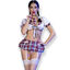 Questi elastici per capelli possono essere utilizzati per creare diverse acconciature per completare il costume. Possono essere un'aggiunta divertente e pratica al tuo outfit. La mini cravatta è un dettaglio classico nei costumi da scolaretta. Aggiunge un tocco di formalità all'outfit e rafforza l'immagine dello studente. Il perizoma bianco è un capo intimo che completa il set, aggiungendo un tocco finale di sensualità.