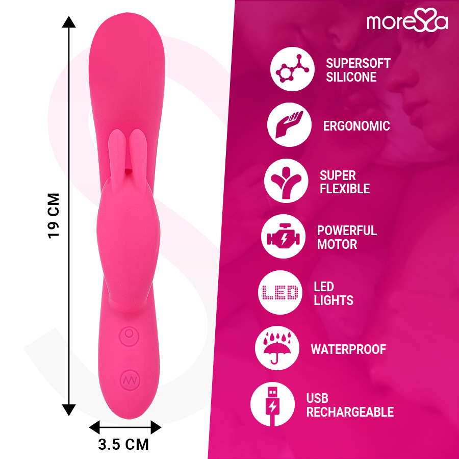in het laadaansluitingsgat. Sluit het apparaat via een connector aan op het stroomnet of via USB op de computer.Moressa is het toonaangevende merk op het gebied van design, kwaliteit en technologie. We hebben een innovatief product ontwikkeld en elk productieproces verzorgd om het beste resultaat te bereiken. Moressa is een symbool van energie, kracht en garantie. Als je een Moressa Sextoy koopt, betekent dat dat je één bent met het heden. Elk Moressa-speeltje brengt je naar andere sensaties. Een ongeëvenaard resultaat dankzij de comfortabele Premium siliconen en het ergonomische ontwerp.