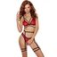 Eleve sua coleção de lingerie com o irresistível conjunto vermelho e preto da PASSION , uma fusão perfeita de sensualidade clássica e design moderno. Este conjunto de três peças — sutiã, calcinha e cinta-liga — foi criado para realçar cada curva com elegância, intensidade e um toque de ousadia.