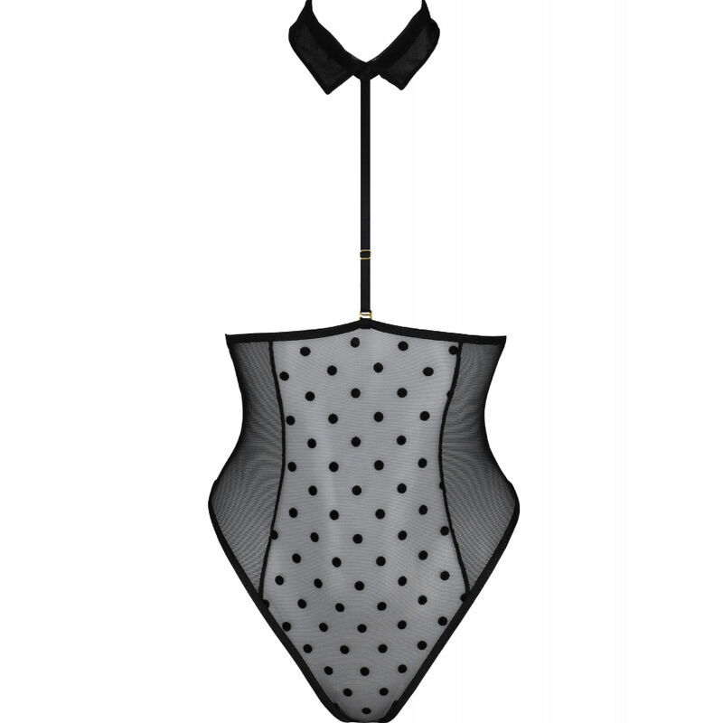 Deze sexy Trisha body is een ontwerp van het merk Passion, gericht op vrouwen die bewust zijn van hun lichaam en vrouwelijkheid. Perfect voor elk moment en elke gelegenheid waarop u plezier wilt hebben. Het getoonde model laat de borsten volledig onbedekt. Korsetafwerking aan de achterkant voor meer comfort. Een sexy, afneembare choker in de vorm van een kraag versterkt het karakter.