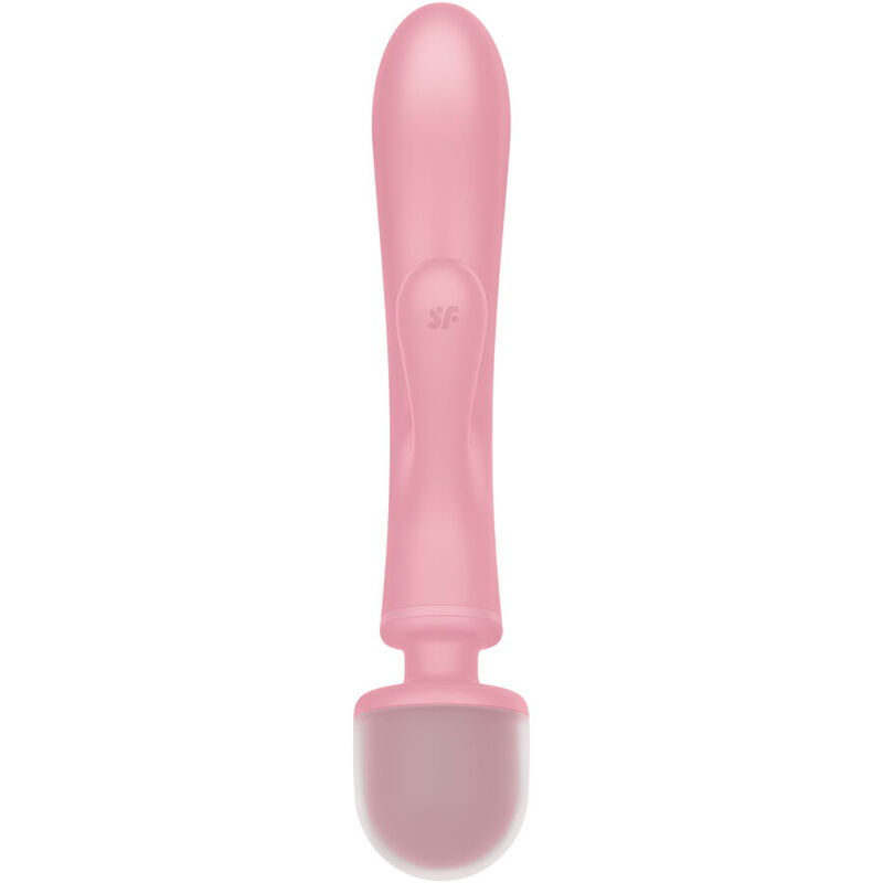 Tres motores alimentan las dos funciones del Satisfyer Triple Lover de silicona con mucha potencia. El vibrador puede utilizarse tipo conejo para una estimulación sincronizada del punto G y el clítoris o como masajeador para masajes de cuerpo entero.
